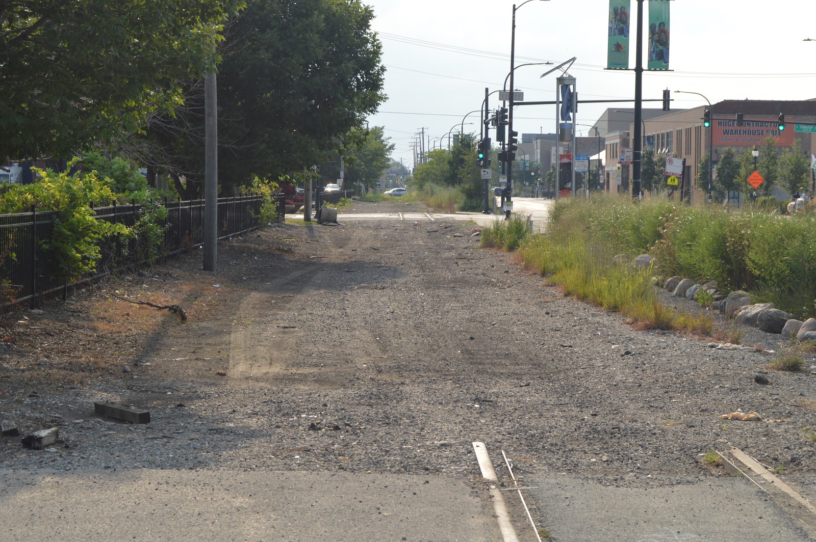 Looking West. The track is gone except what was in the driveway and in Thorpe Street.